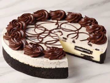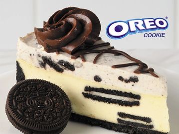 Oreo® cookies baked in our creamy cheesecake, layered with Oreo® cookie mousse. Finished with a drizzle of chocolate ganache and milk chocolate rosettes.