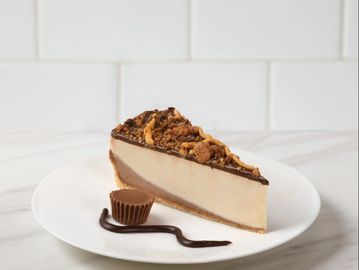 Reese’s® Peanut Butter Cups combined with a rich chocolate cheesecake topped with chopped Reese’s® Peanut Butter Cups.