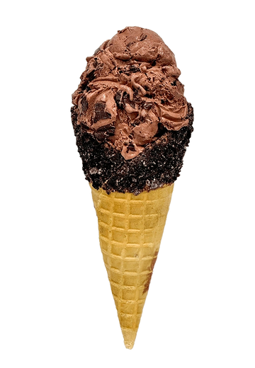 Chocolate ice cream with a chocolate fudge ripple and chocolatey flakes.