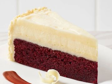 Red Velvet cake and our creamy Classic cheesecake layered with rich cream cheese icing, and finished with white chocolate curls